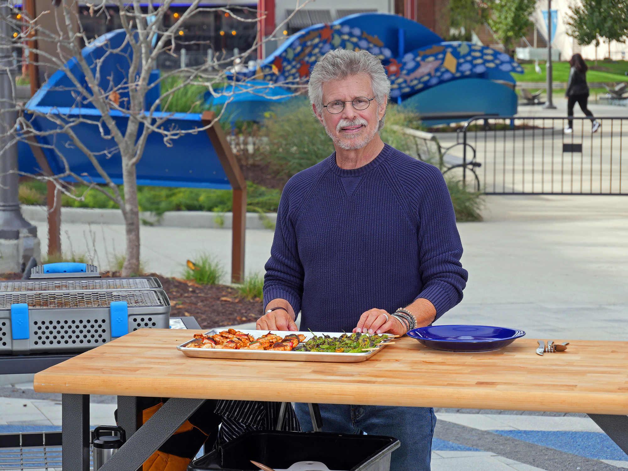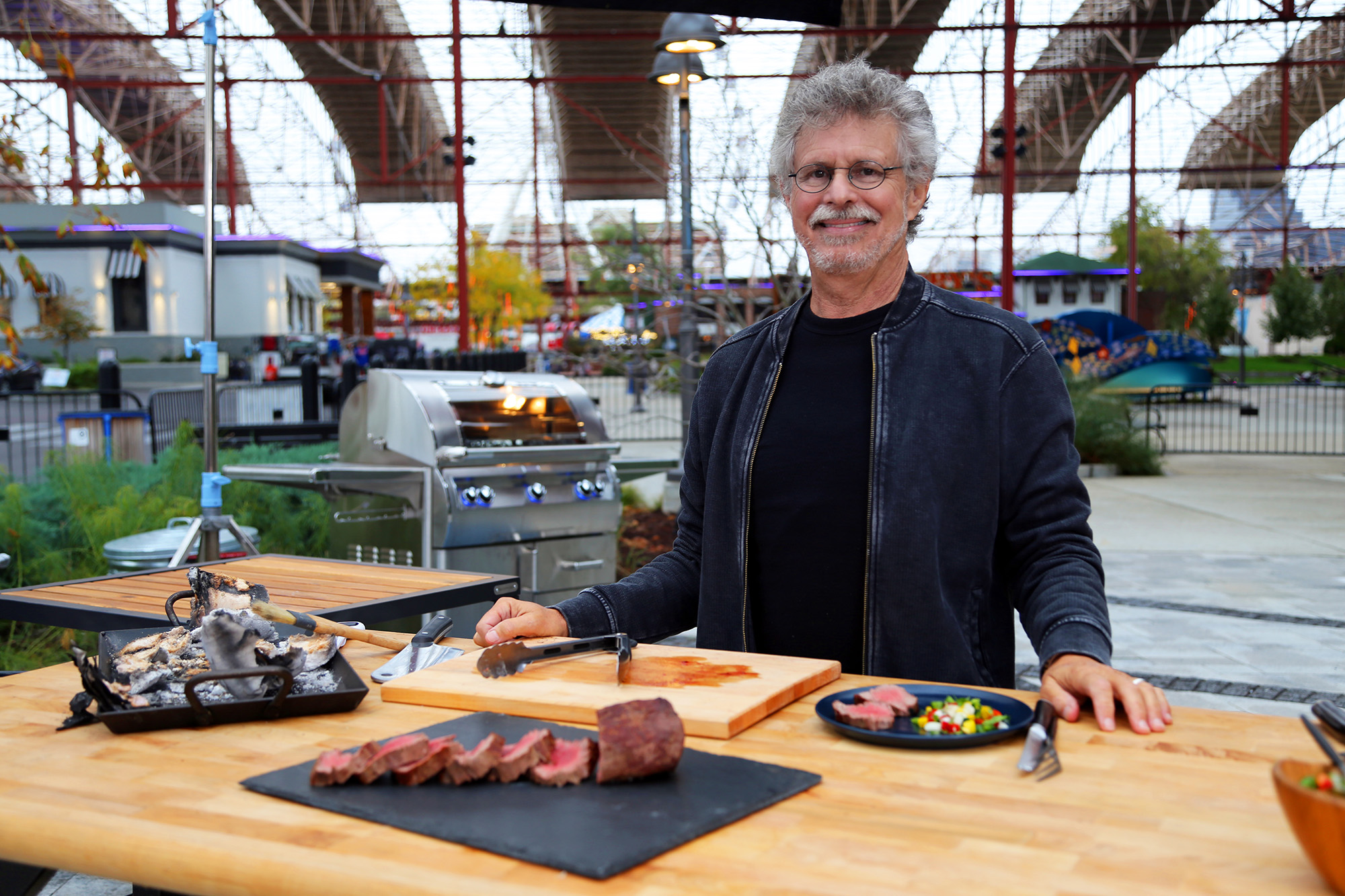 Back again this year, even bigger and better, is the Project Fire Mystery Box, in which Steven receives a mystery ingredient and then spontaneously creates a recipe on the set. Other shows in this year’s lineup focus on Extreme Grilling, Game Day Grilling (our tailgating show), Wagyu Demystified and Sandwiches Hit the Grill. We even have a show on breakfast.