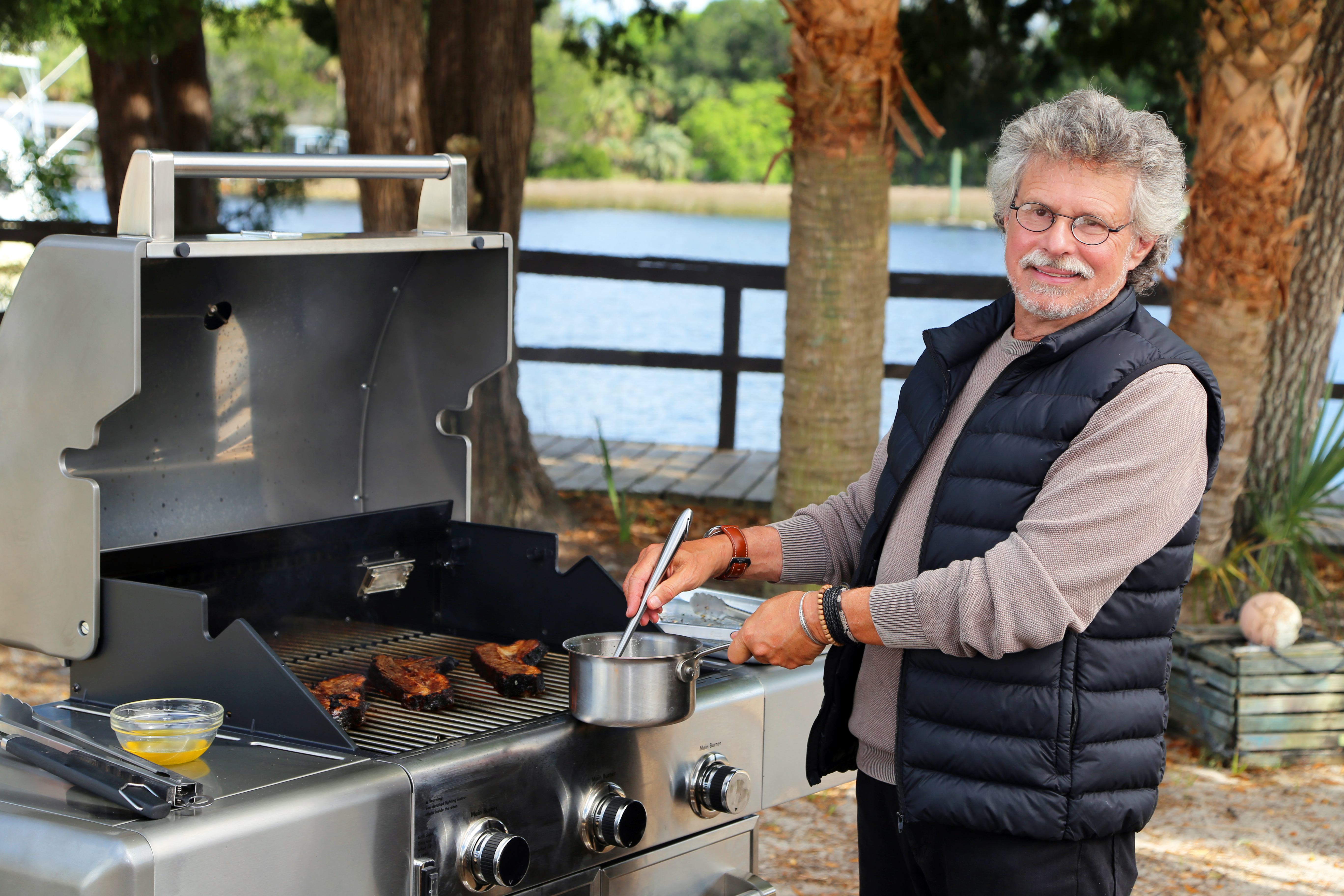 The series will present some spectacular new ingredients from fresh hearts of palm from Florida and Hawaii to local redfish personally caught by Steven and grilled “on the half shell”. Wild mushrooms? Check. Beef tomahawks? Of course. Grilled pizza with ember roasted squash? We’ve got you covered. And see grilled cheese like you’ve never experienced. Yes, it comes flambéed with cognac!